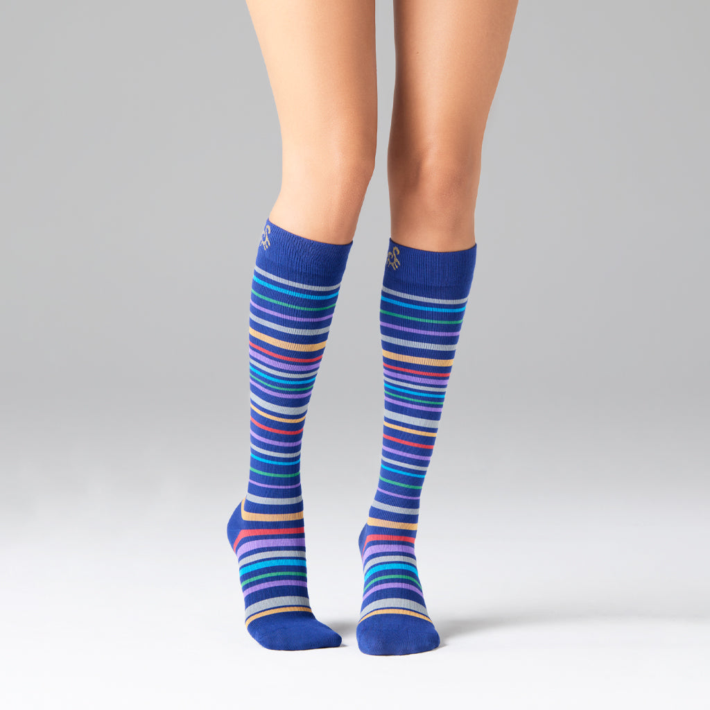 🧦 Stil & funktion – färgglada ränder som kombinerar mode, hälsa och välbefinnande.