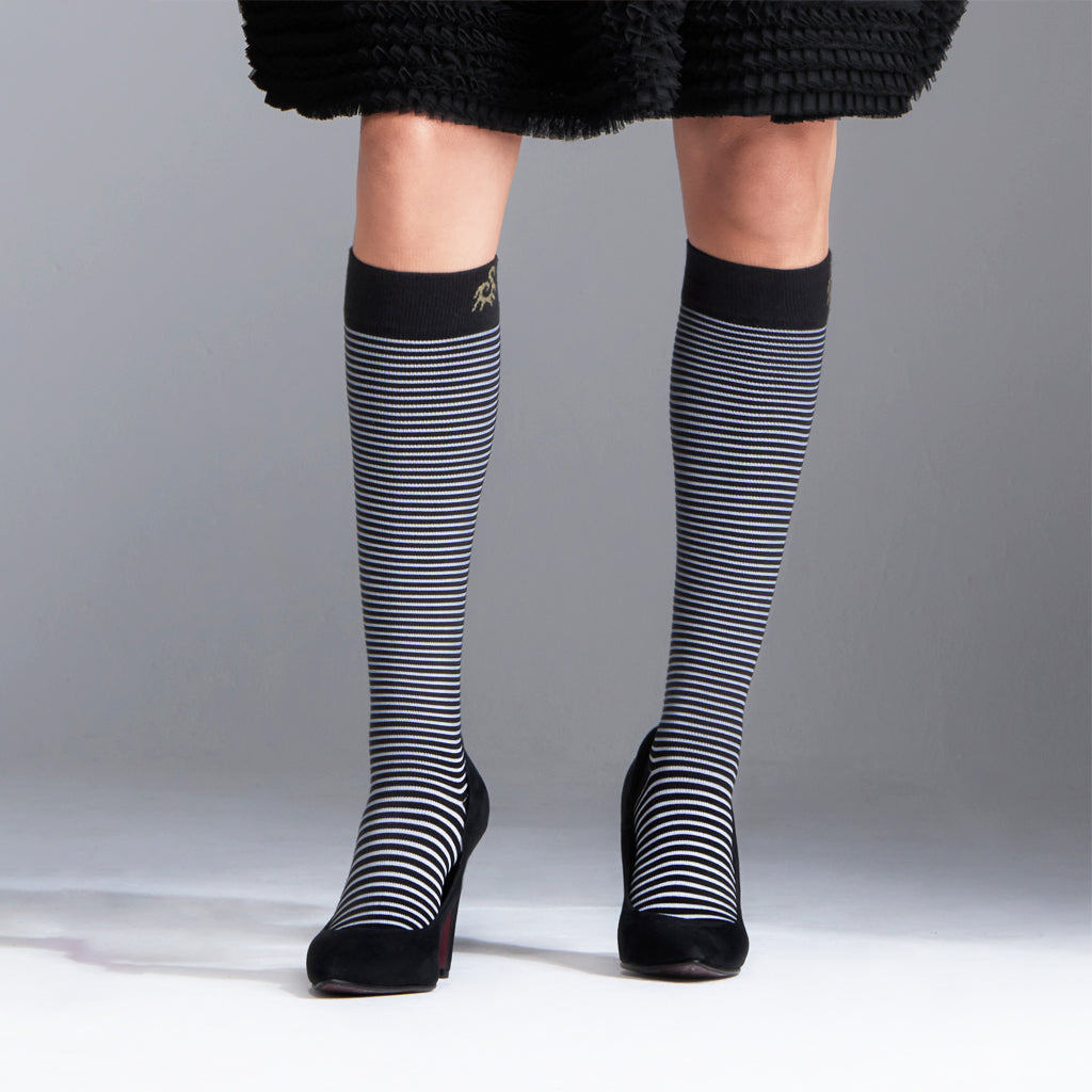 Solidea Strip Game Unisex knästrumpor med graderad kompression 15/21 mmHg kombinerar hälsa och stil. Tack vare mjuk bambutråd förbättrar de cirkulationen, lindrar svullnad och förebygger åderbråck, ödem och lymfödem. Perfekta för både vardag och resor – komfort, funktion och mode i ett.