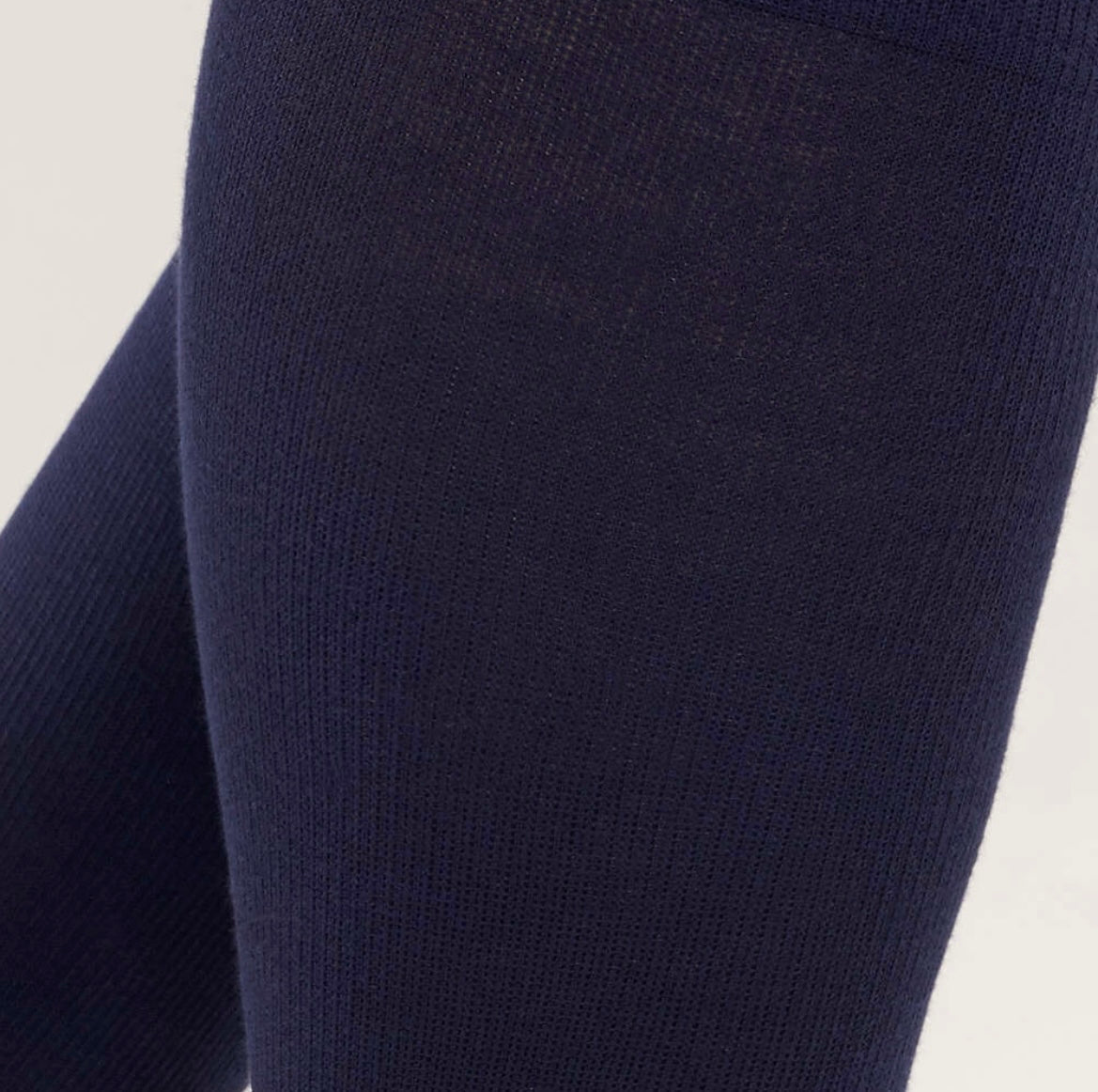 Unisex knästrumpor med graderad kompression 13/17 mmHg med värdefull bambutråd. Produkten lämpar sig för att hantera och lätta återflödet i vener och lymfa, för att förebygga en eller fler cirkulationsstörningar (t.ex. ödem, djup venös trombos (DVT), åderbråck, lymfödem). Hög komfort och elegant look säkerställs! Stickningens vävnad består av tre lager som ger en sandwicheffekt: på insidan finns polyamid- och elastantråd, medan det på utsidan och insidan, i kontakt med huden, finns bambutråd som ger en behaglig känsla av att hela strumpan är gjord av bambutråd. Denna speciella textur skapar en ”mikromiljö” inuti vävnaden som möjliggör transpiration och värmereglering så att huden förblir torr. Texturen är lätt och gör den särskilt lämplig för den varmare årstiden. Med osynlig handlänkad tå.