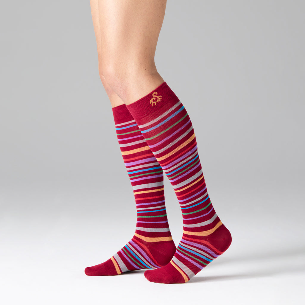 🧦 Stil & funktion – färgglada ränder som kombinerar mode, hälsa och välbefinnande.