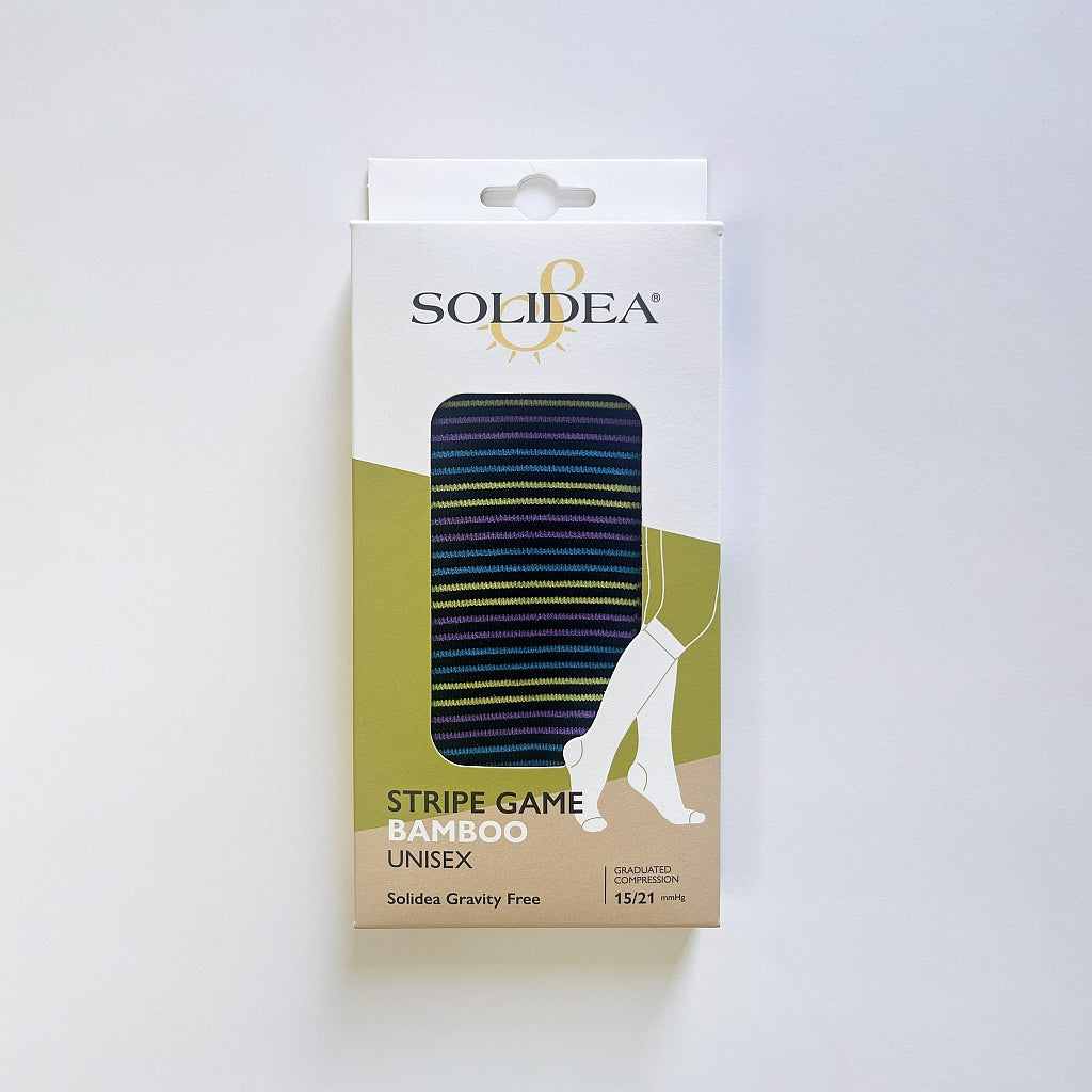 Solidea Strip Game Unisex knästrumpor med graderad kompression 15/21 mmHg kombinerar hälsa och stil. Tack vare mjuk bambutråd förbättrar de cirkulationen, lindrar svullnad och förebygger åderbråck, ödem och lymfödem. Perfekta för både vardag och resor – komfort, funktion och mode i ett.